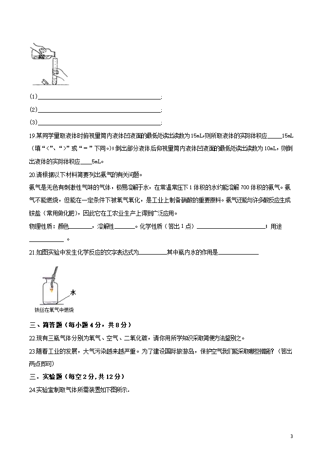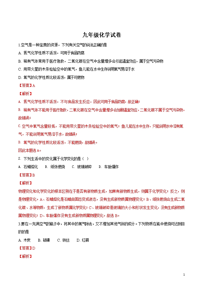 【内容简介】精品解析:湖北省襄阳市第七中学2019届九年级上学期第一次月考化学试题(word版含答案解析)