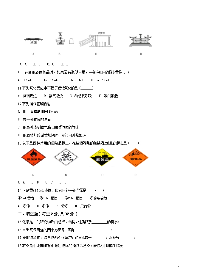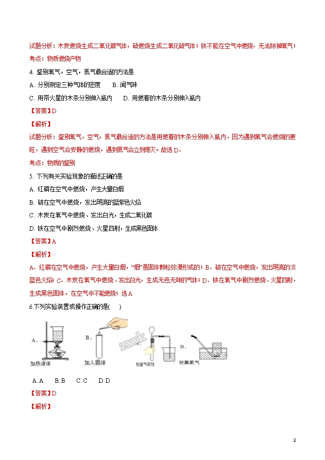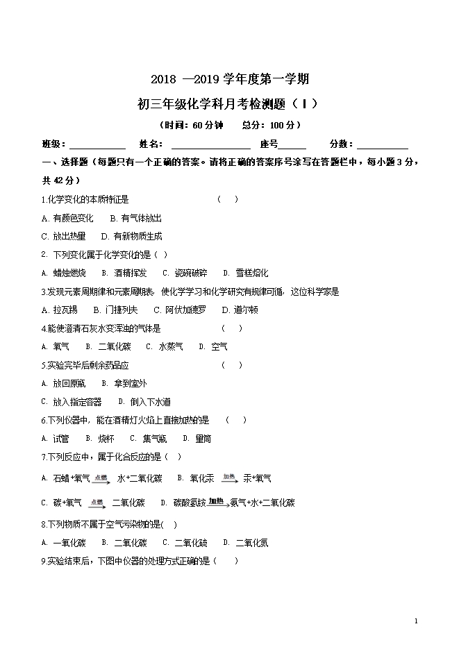 精品解析:湖北省襄阳市第七中学2019届九年级上学期第一次月考化学试题(word版含答案解析)