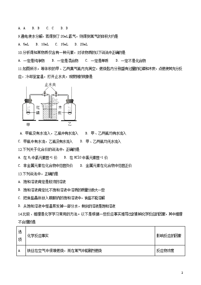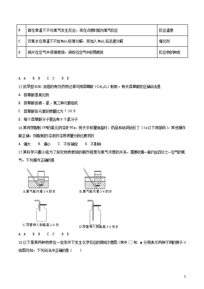 山东省滨州市六校2018-2019学年第一学期期中联考九年级化学试题(word版无答案)