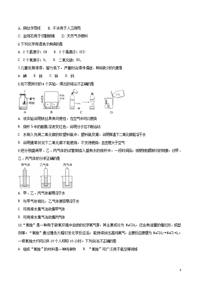 【内容简介】福建省晋江市安海片区2019届九年级上学期期中考试化学试题(word版无答案)