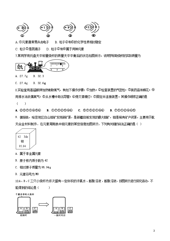辽宁省大石桥市水源镇九年一贯制学校2019届九年级上学期第一次阶段检测化学试题(word版无答案)