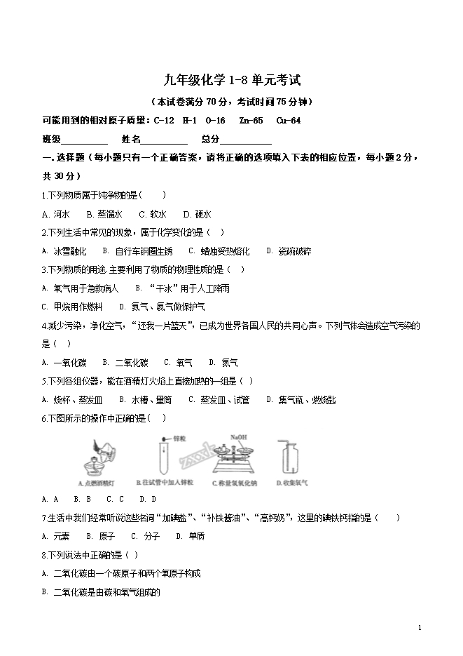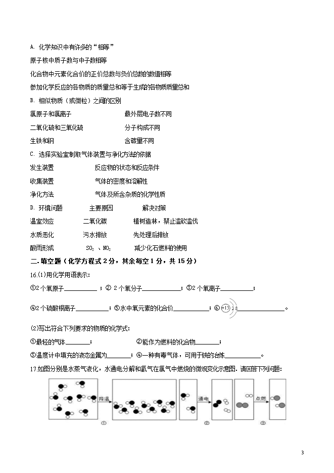 【内容简介】山西省左玉县第二中学2019届九年级上学期第一次月考化学试题(word版无答案)