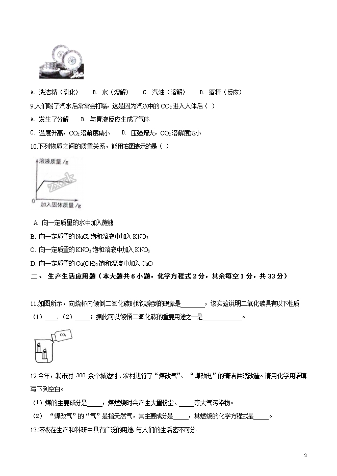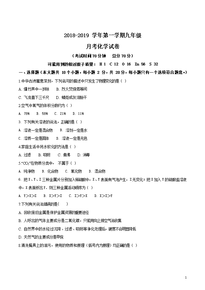 山西省右玉县二中2019届九年级上学期第一次月考化学试题(word版无答案)