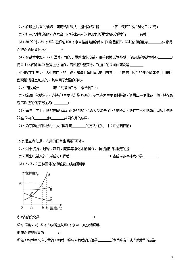 【内容简介】山西省右玉县二中2019届九年级上学期第一次月考化学试题(word版无答案)