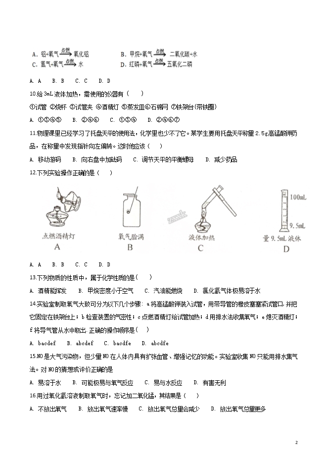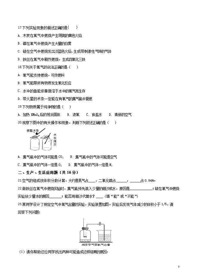 【内容简介】山西省平定县东关中学2019届九年级上学期第一次月考化学试题(word版无答案)