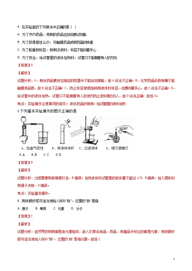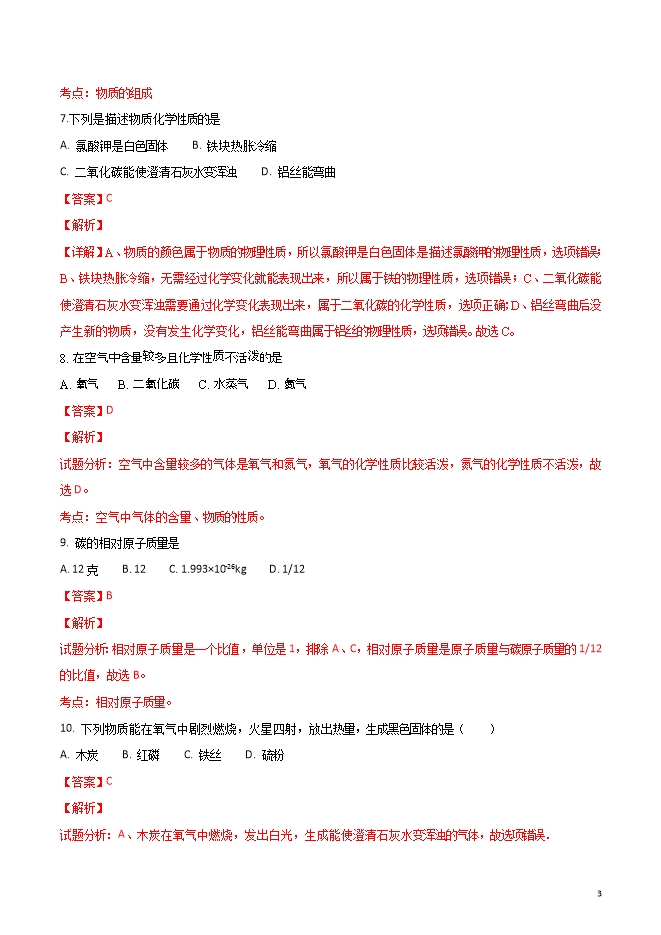 精品解析:甘肃省徽县第三中学2019届九年级上学期期中考试化学试题(word版含答案解析)