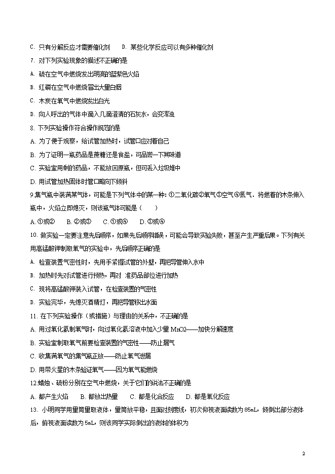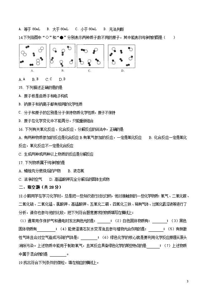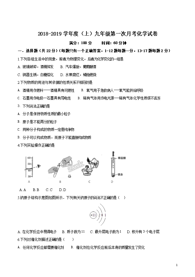 【内容简介】辽宁省丹东市第七中学2019届九年级上学期第一次月考化学试题(word版无答案)