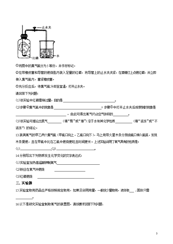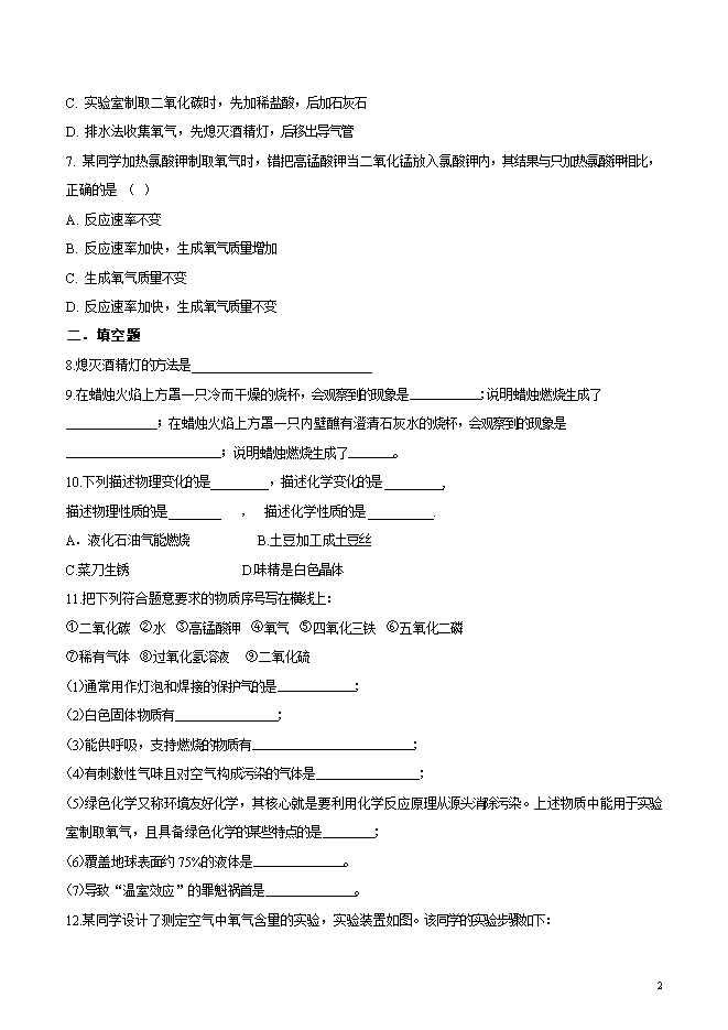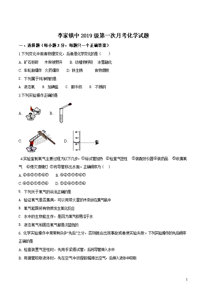 【内容简介】四川省安岳县李家镇初级中学2019届九年级上学期第一次月考化学试题(word版无答案)