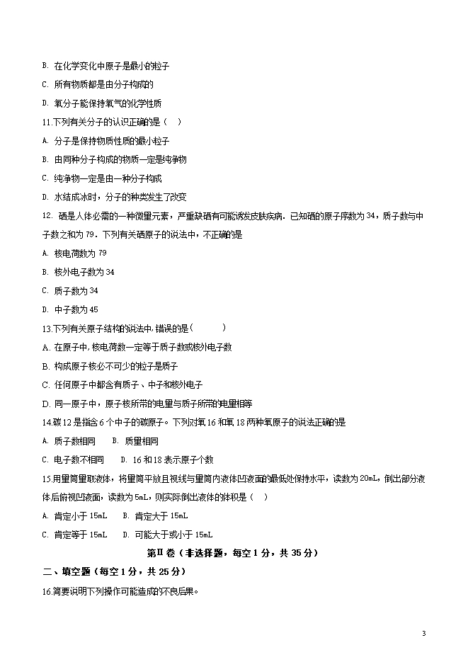 所属专辑: 《2019届九年级上学期第一次月考化学试题汇总》专辑