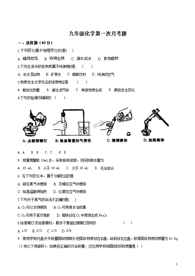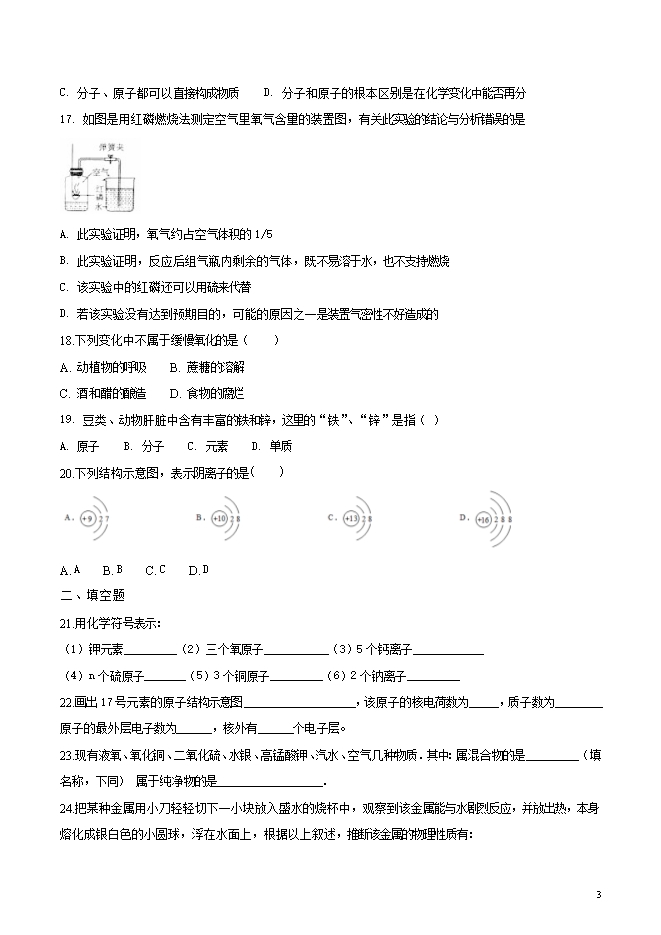 【内容简介】山东省庆云县第二中学2019届九年级上学期第一次月考化学试题(word版无答案)