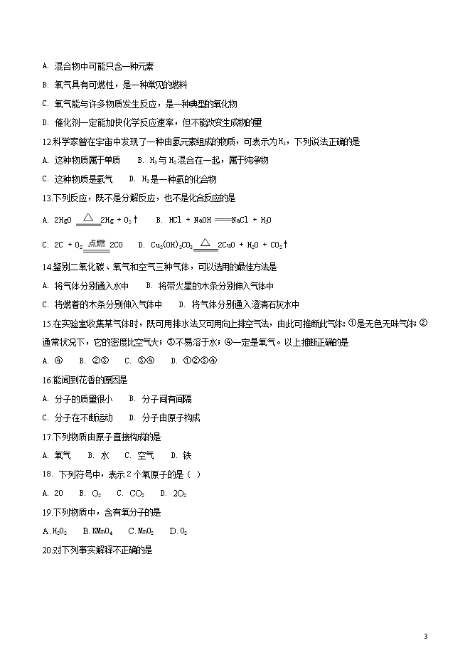 北京市北京四中2019届九年级第一学期期中考试化学试卷(word版无答案)