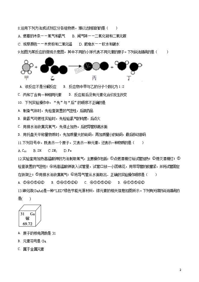 所属专辑: 《2019届九年级上学期期中考试化学试题汇总》专辑