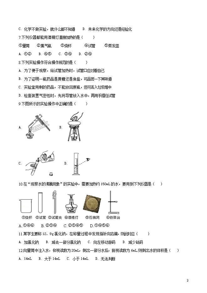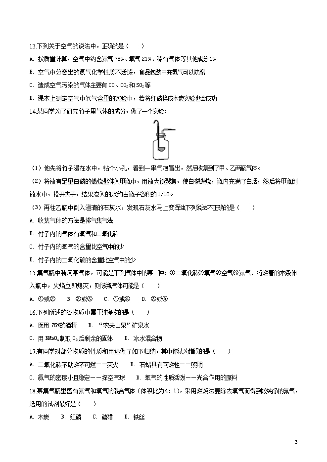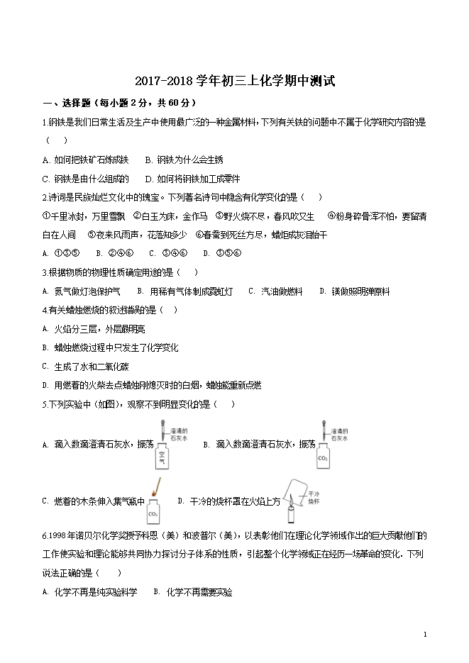 【内容简介】广东省深圳外国语学校2019届九年级上学期期中测试化学试题(word版无答案)