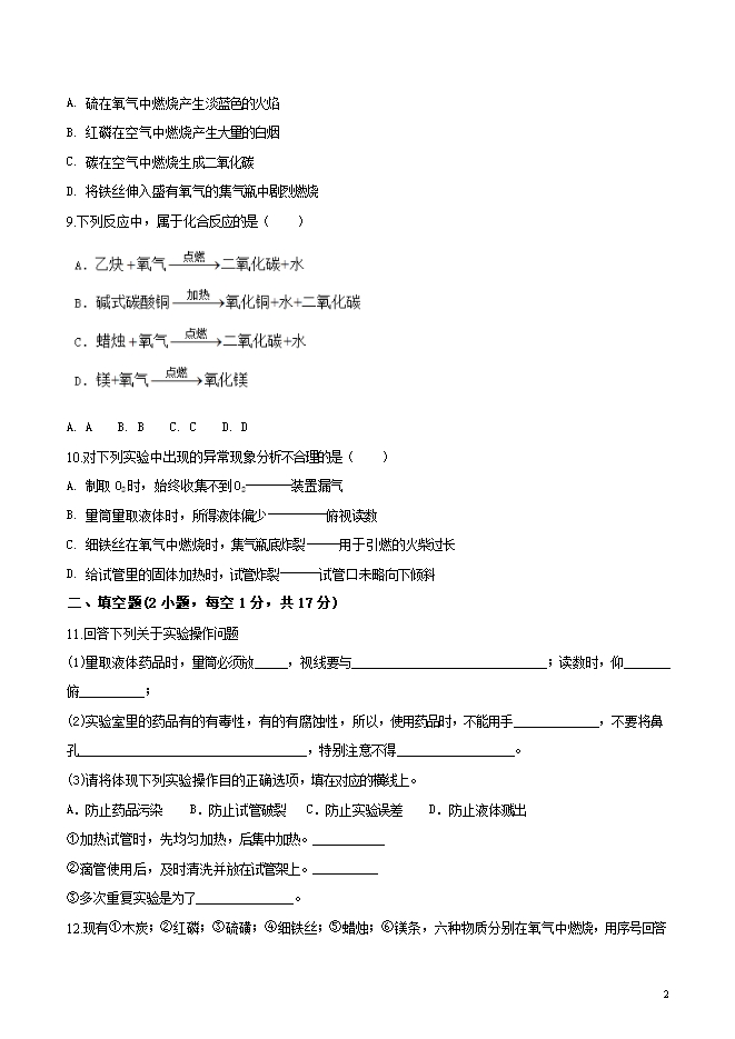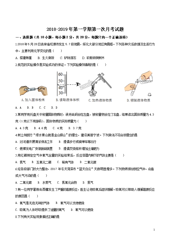 所属专辑: 《2019届九年级上学期第一次月考化学试题汇总》专辑