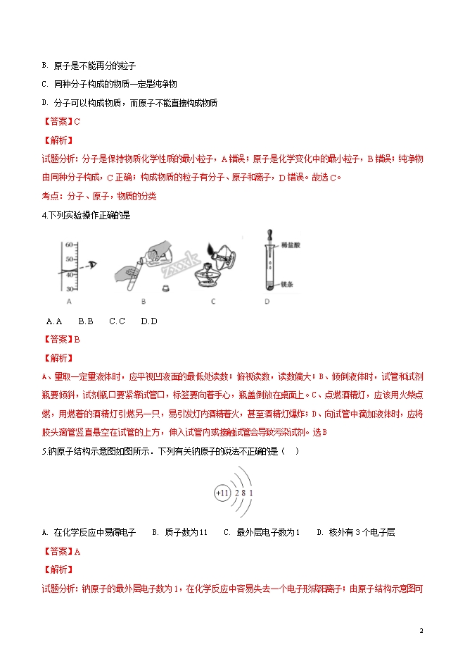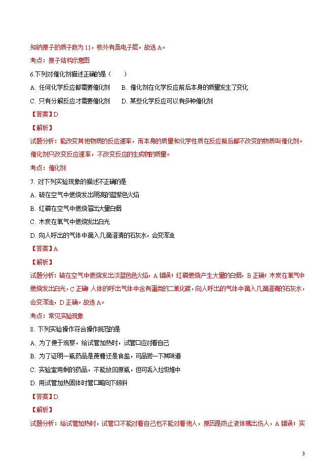 【内容简介】精品解析:辽宁省丹东市第七中学2019届九年级上学期第一次月考化学试题(word版含答案解析)