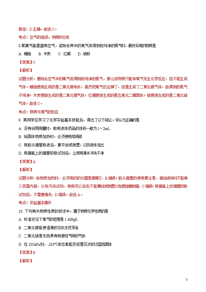 精品解析:河南省郑州市第九十二中学2019届九年级人教版化学上册第一次月考化学试题(word版含答案解析)