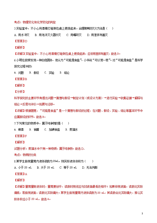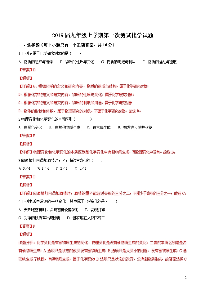 【内容简介】精品解析:河南省长葛市第一初级中学2019届九年级上学期第一次测试化学试题(word版含答案解析)