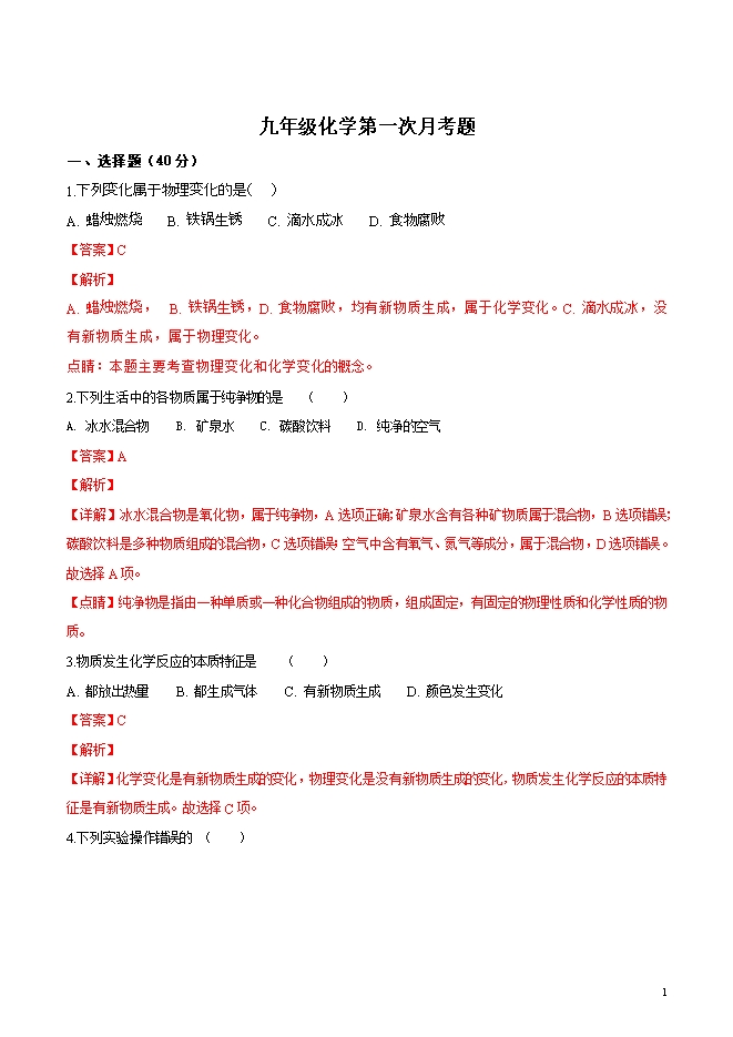 【内容简介】精品解析:山东省庆云县第二中学2019届九年级上学期第一次月考化学试题(word版含答案解析)