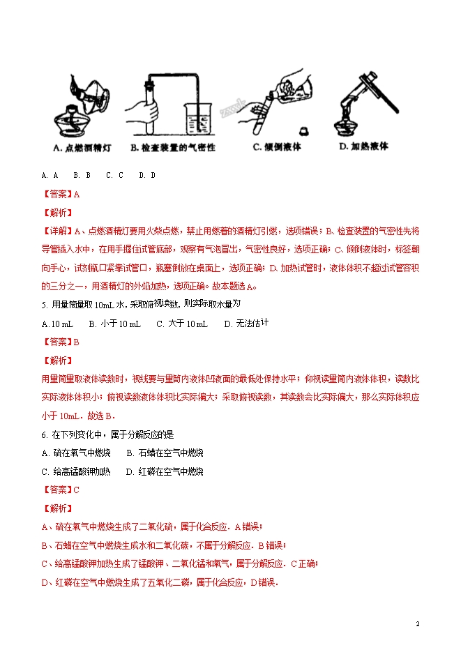 精品解析:山东省庆云县第二中学2019届九年级上学期第一次月考化学试题(word版含答案解析)