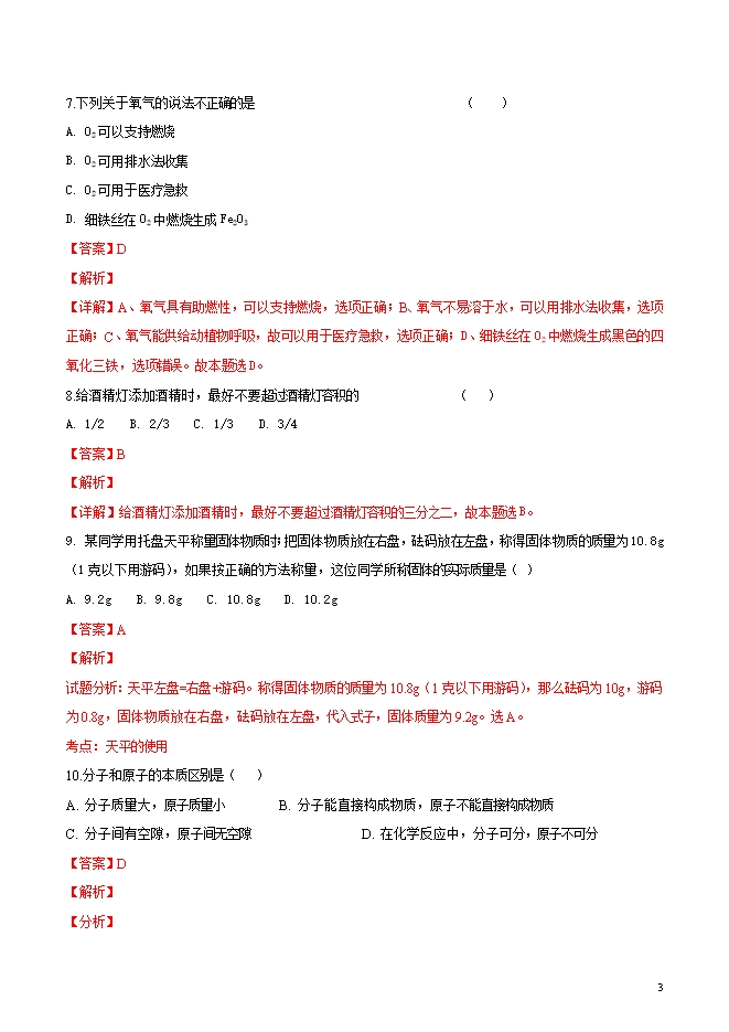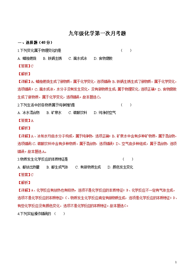 精品解析:山东省德州市庆云县第二中学2019届九年级上学期第一次月考化学试题(word版含答案解析)