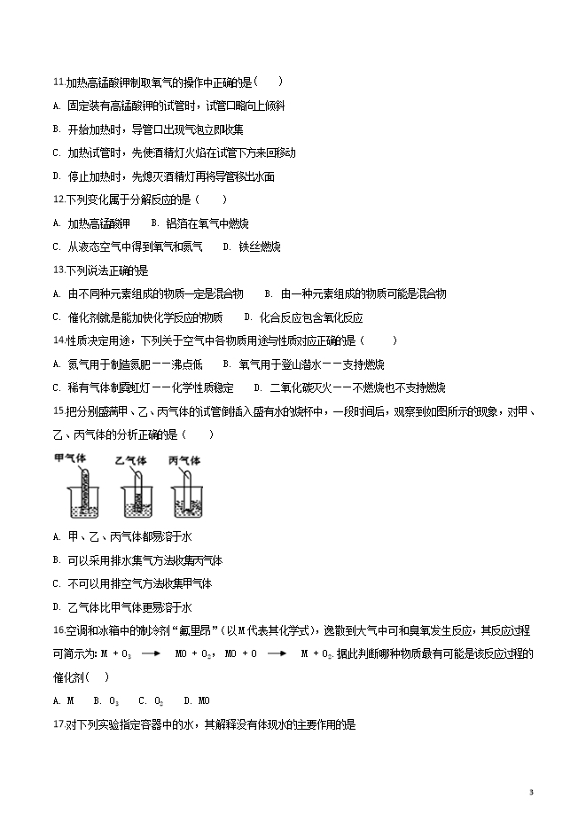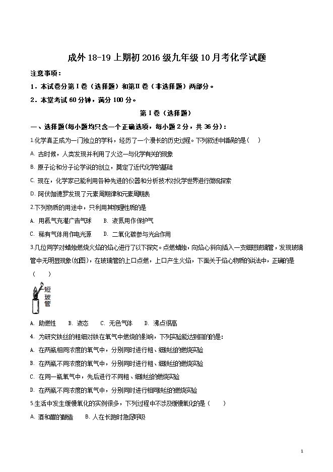 【内容简介】四川省成都外国语学校2019届九年级上学期第一次月考化学试题(word版无答案)