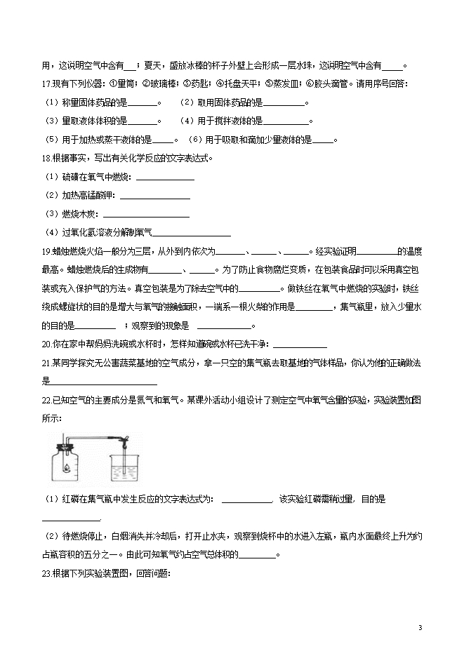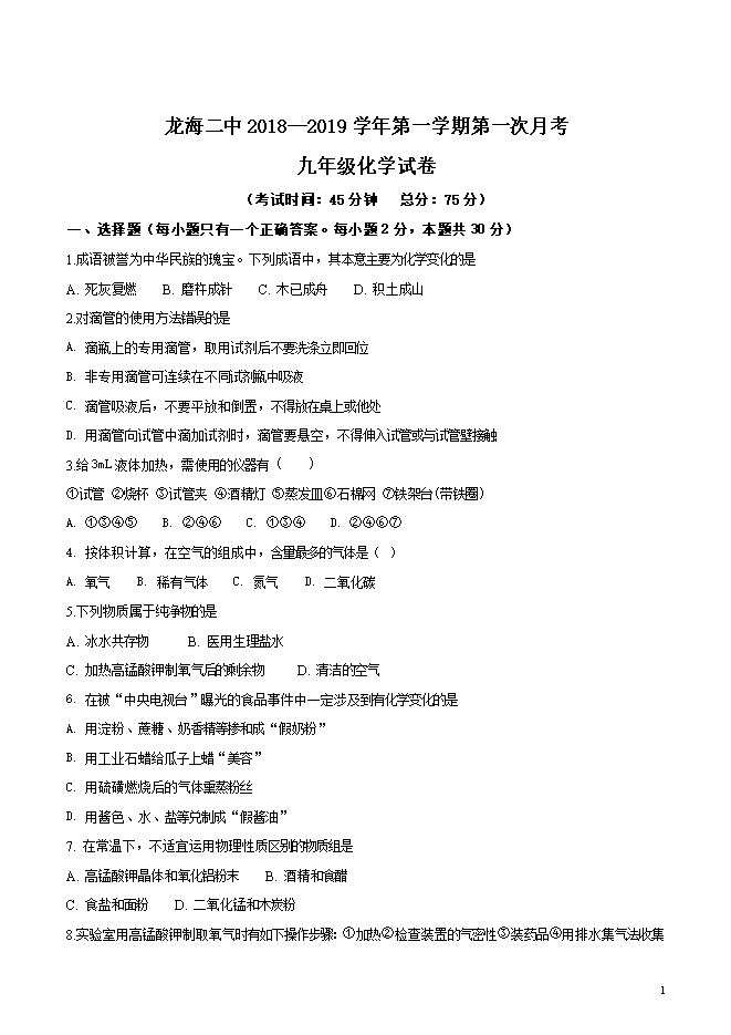 【内容简介】福建省龙海市第二中学2019届九年级上学期第一次月考化学试题(word版无答案)