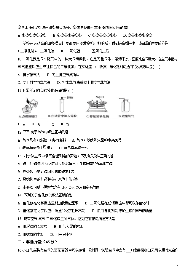 福建省龙海市第二中学2019届九年级上学期第一次月考化学试题(word版无答案)