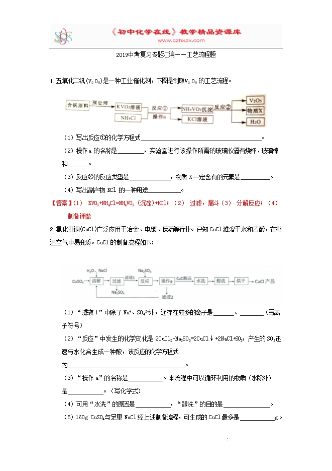 【内容简介】2019中考复习专题汇编——工艺流程题