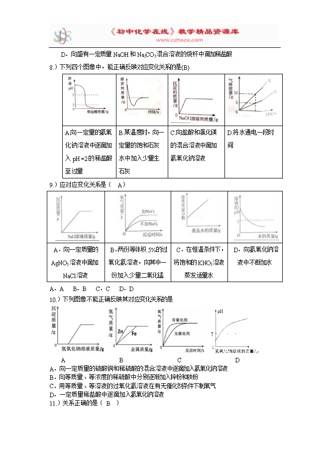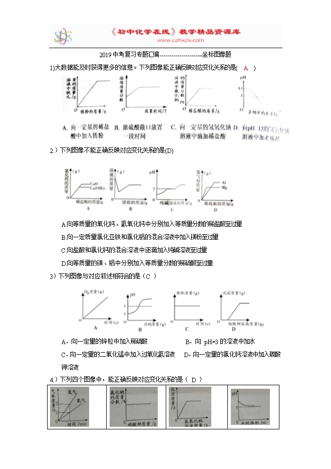 【内容简介】2019中考复习专题汇编——坐标图像题