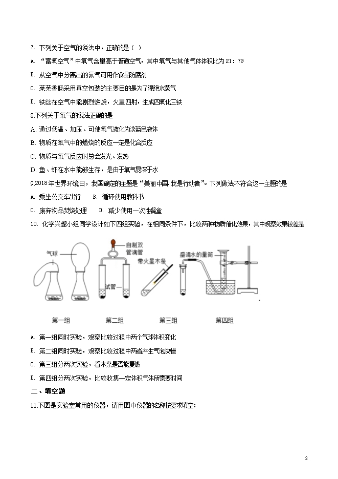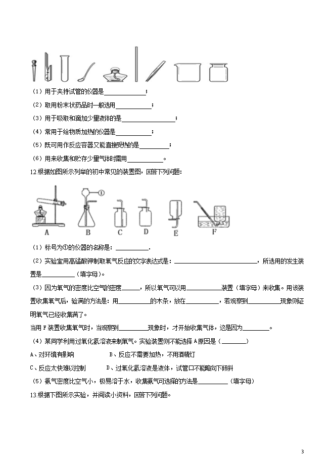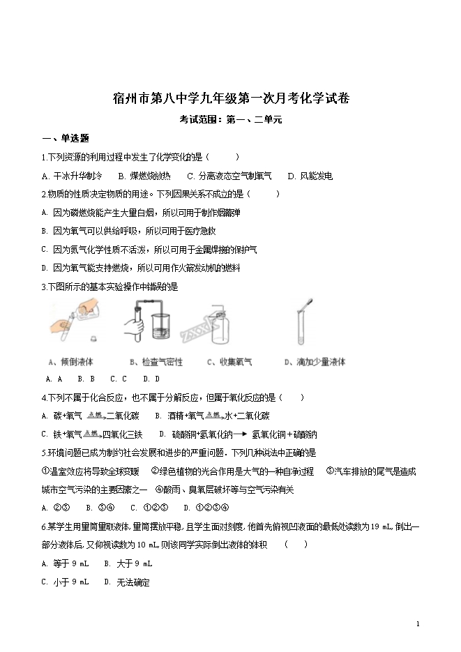 【内容简介】安徽省宿州市第八中学201届九年级上学期第一次月考化学试题(word版无答案)
