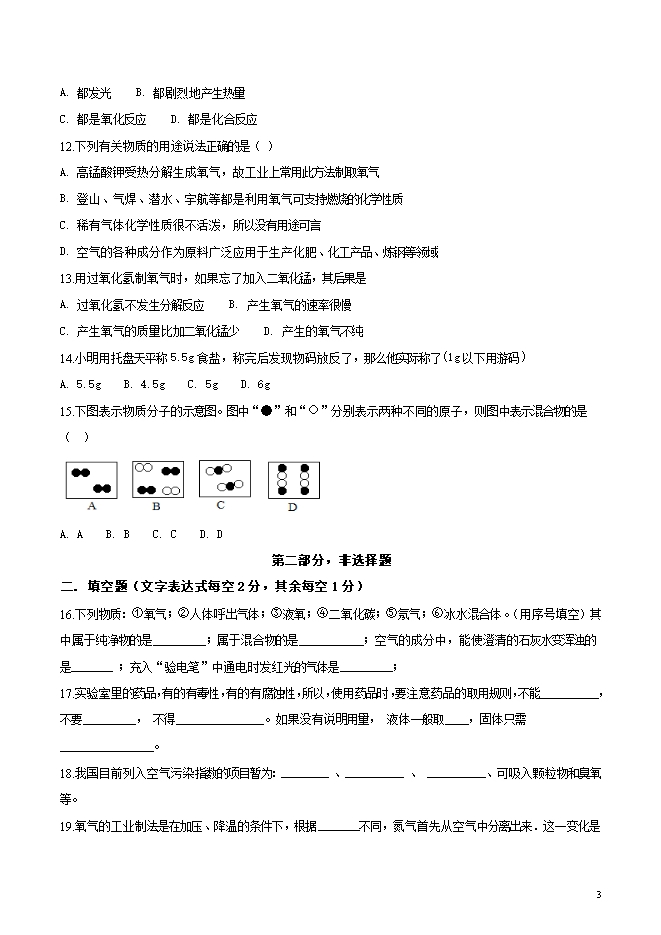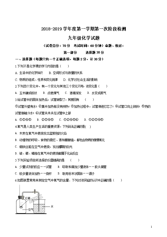 【内容简介】江苏省东台市第三联盟2018-2019学年九年级上学期第一次月考化学试题(word版无答案)