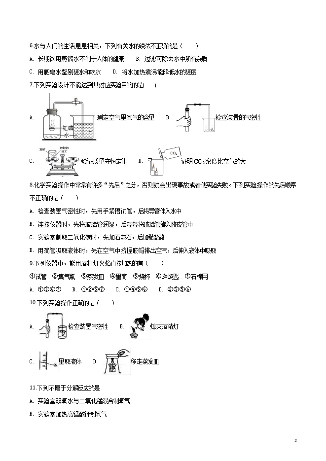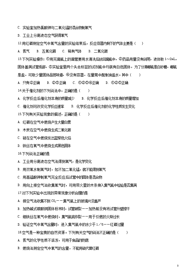 所属专辑: 《2019届九年级上学期第一次月考化学试题汇总》专辑