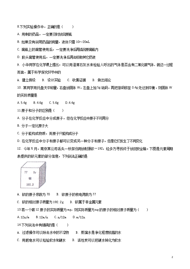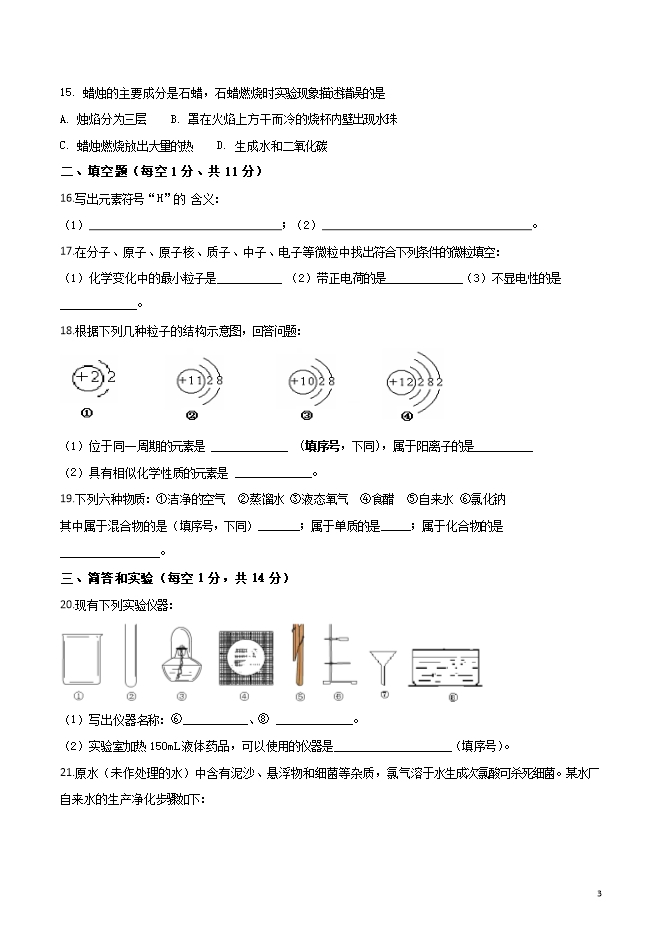 所属专辑: 《2019届九年级上学期第一次月考化学试题汇总》专辑