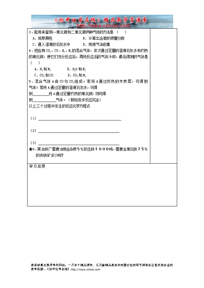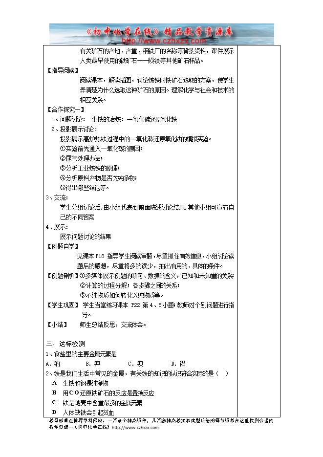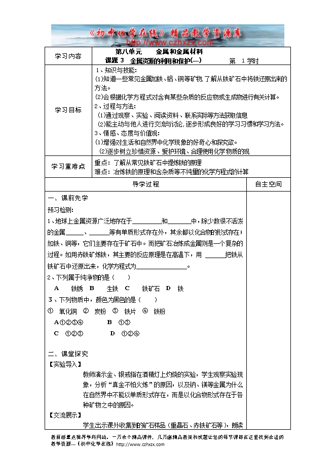 人教版初中化学《第八单元课题3 金属资源的利用和保护》导学案(二)