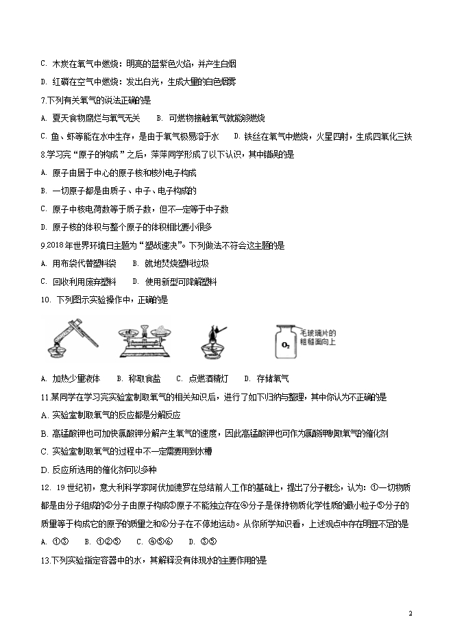 所属专辑: 《2019届九年级上学期第一次月考化学试题汇总》专辑