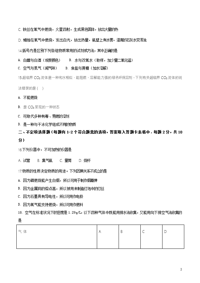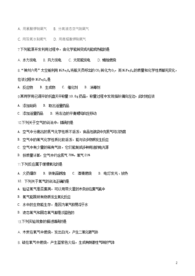 所属专辑: 《2019届九年级上学期第一次月考化学试题汇总》专辑