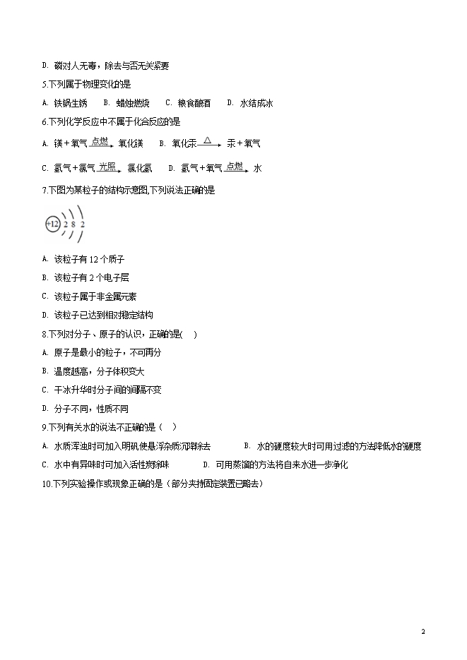 【内容简介】广东省广州市白云区2019届九年级第一学期期中考试(六片联考)化学试题(word版无答案)