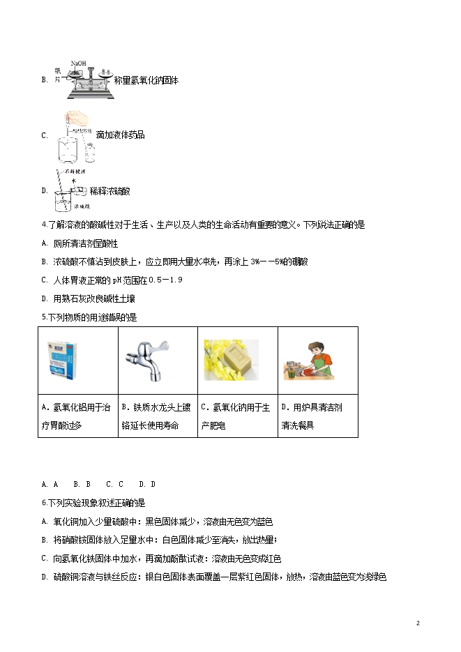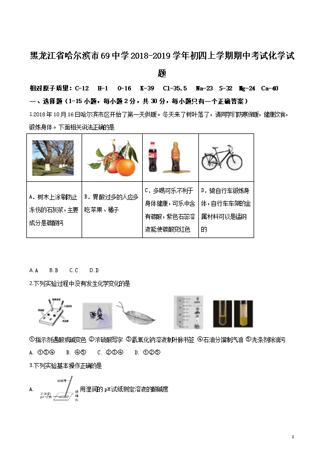 【内容简介】黑龙江省哈尔滨市六十九中2018-2019学年九年级上学期期中考试化学试题(word版无答案)