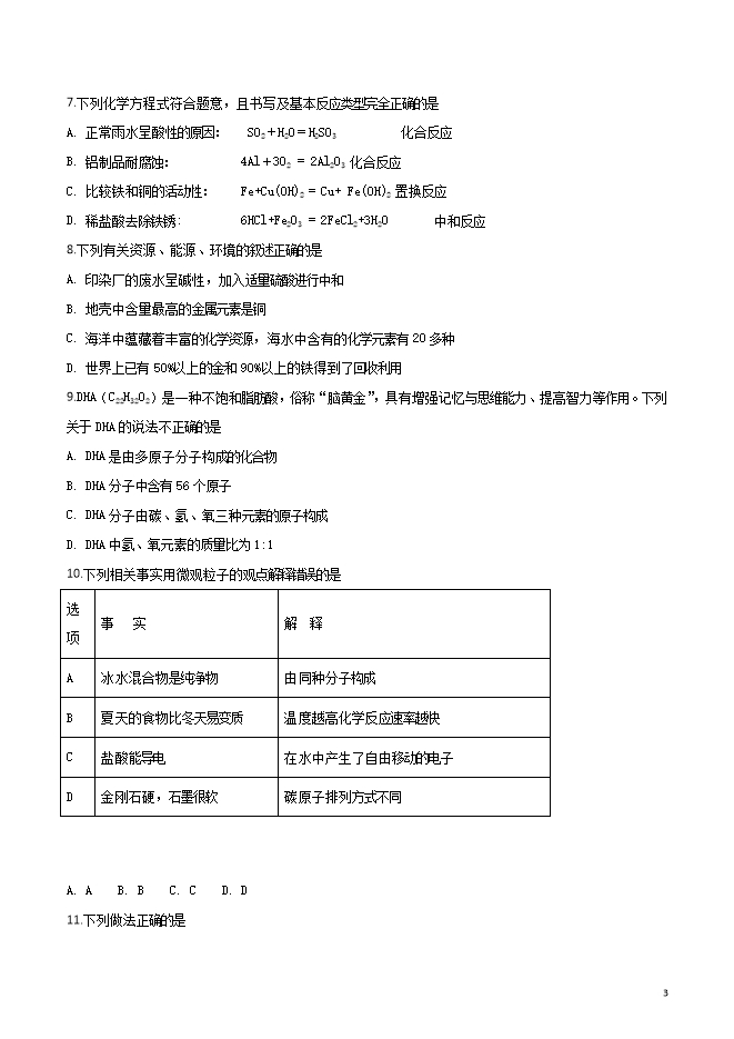 所属专辑: 《2019届九年级上学期期中考试化学试题汇总》专辑