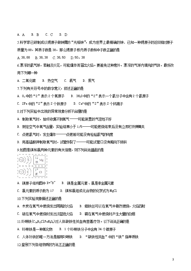 江苏省东台市第二联盟2019届九年级上学期期中考试化学试题(word版无答案)
