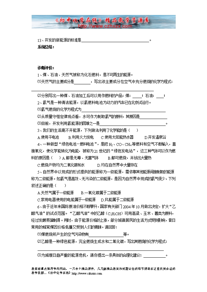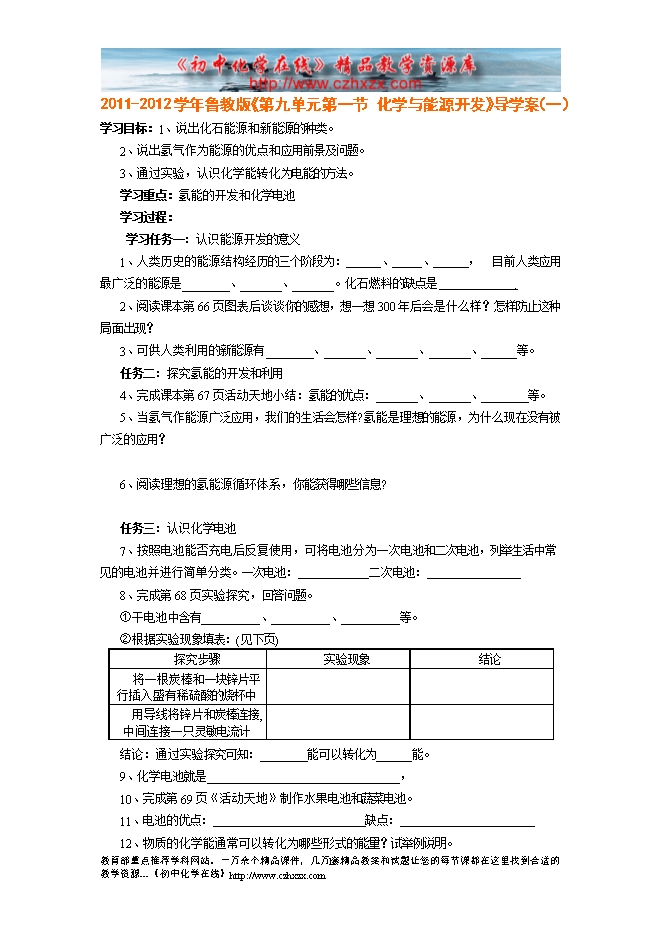 2011-2012学年鲁教版《第十一章第一节 化学与能源开发》导学案(一)