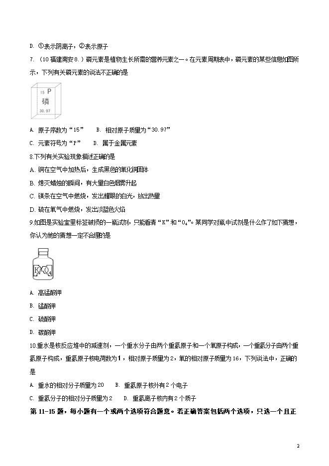 江苏省泰兴市黄桥东区域2019届九年级上学期期中考试化学试题(word版无答案)