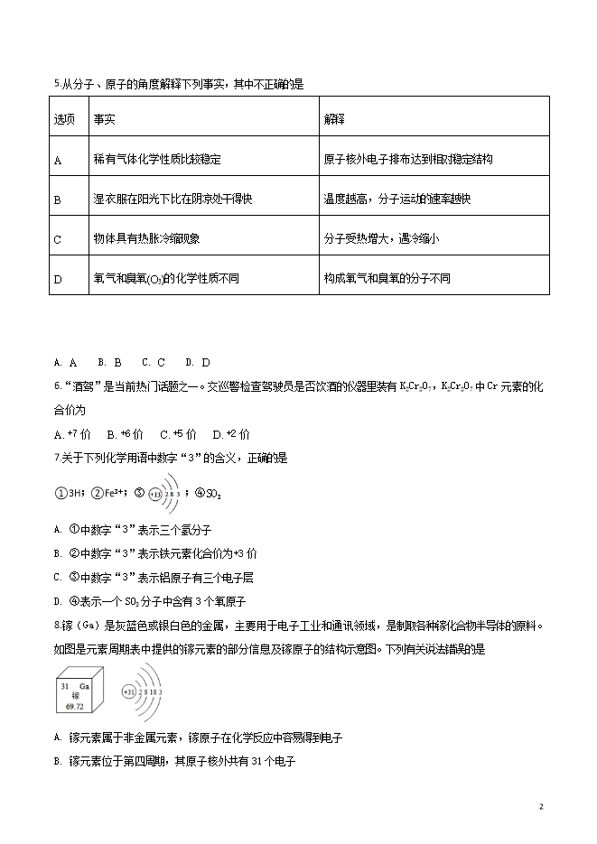 【内容简介】江苏省江阴市澄要片2019届九年级上学期期中考试化学试题(word版无答案)