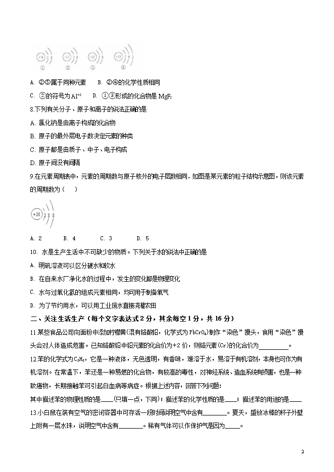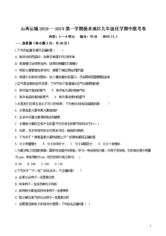 【内容简介】山西省运城市涑水地区2019届九年级第一学期期中联考化学试题(word版无答案)