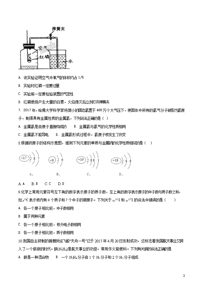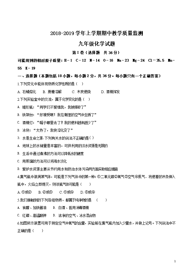 【内容简介】山东省临沭县2019届九年级上学期期中考试化学试题(word版无答案)