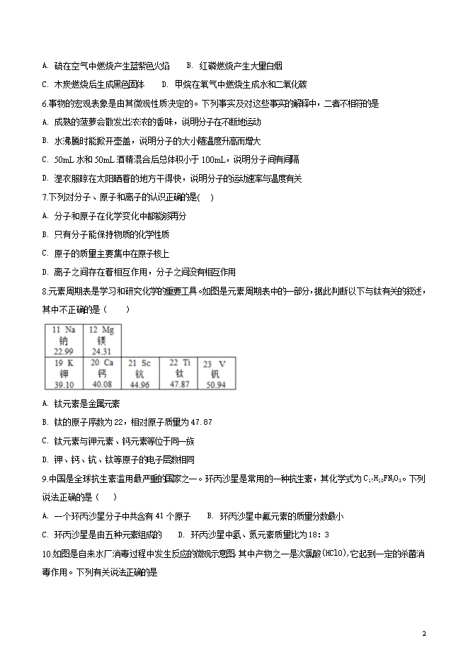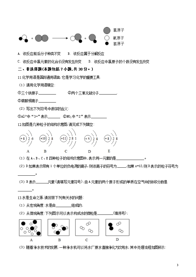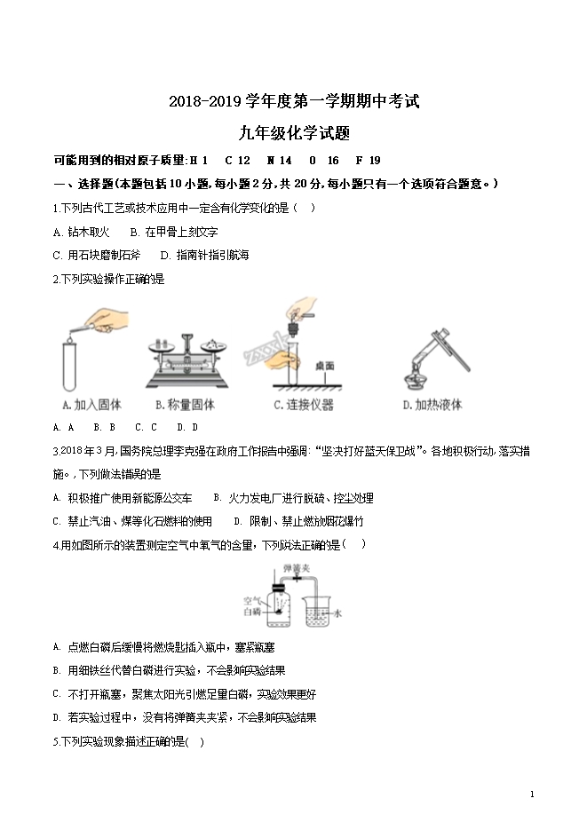 山东省菏泽市东明县2019届九年级第一学期期中考试化学试题(word版无答案)