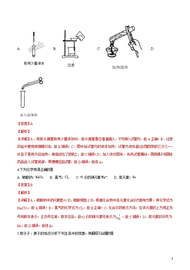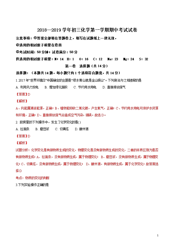 精品解析:江苏省无锡市锡东片2019届九年级上学期期中考试化学试题(word版含答案解析)