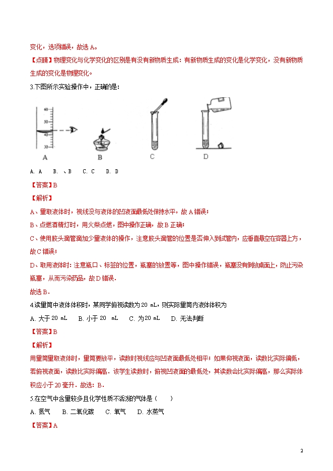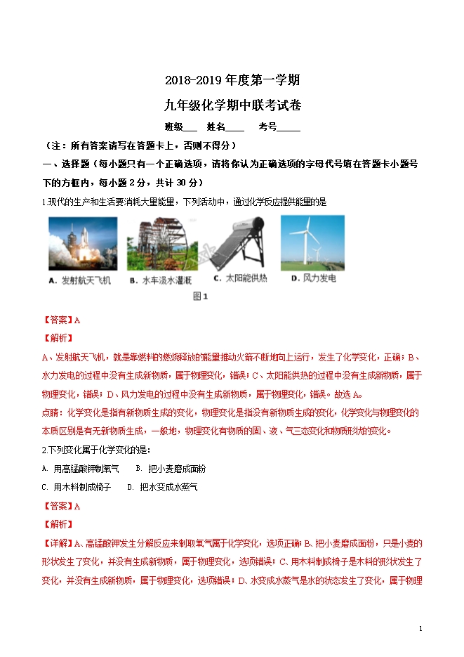 精品解析:陕西省安康市汉滨区2019届九年级上学期期中考试化学试题(word版含答案解析)