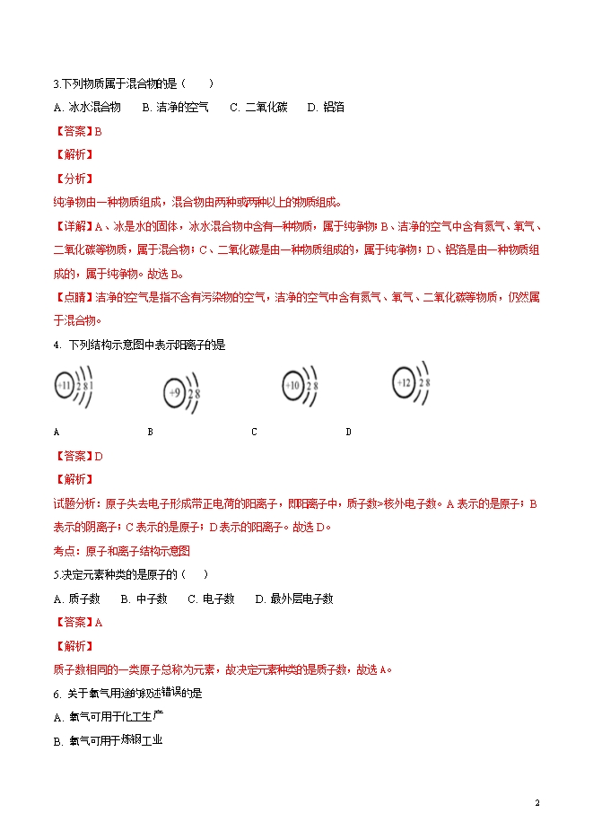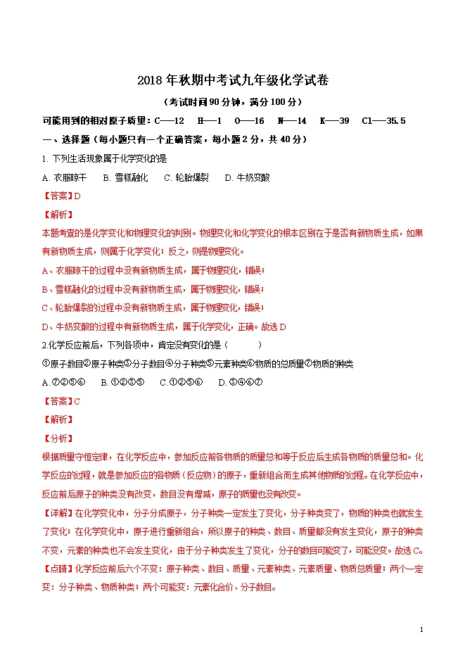 精品解析:四川省青川县沙州初中2019届九年级上学期期中考试化学试题(word版含答案解析)