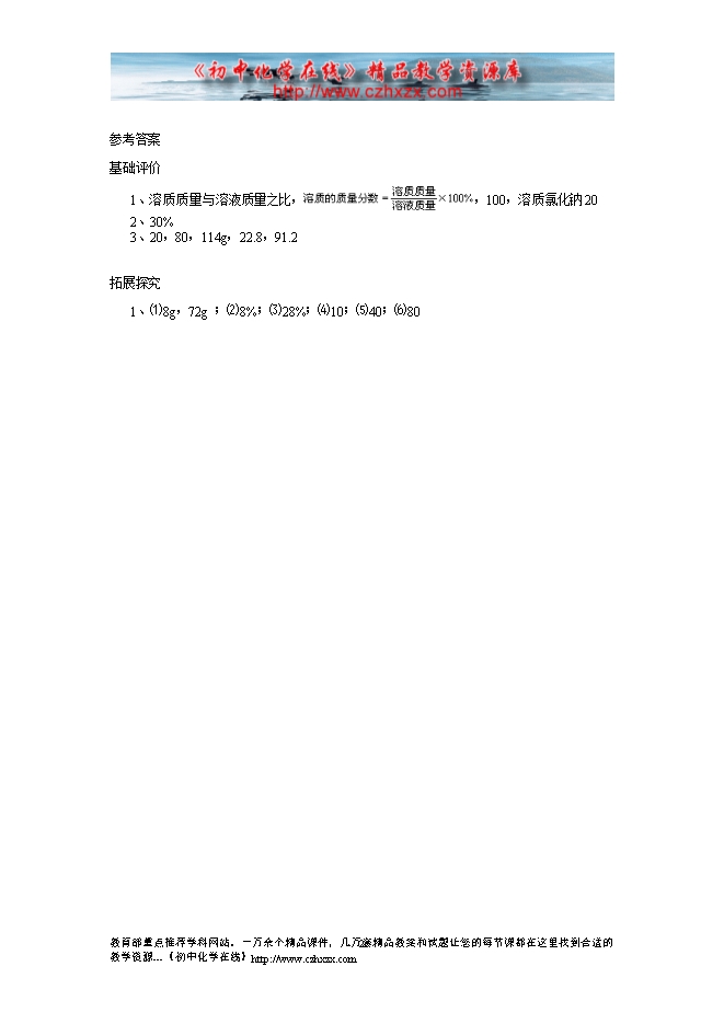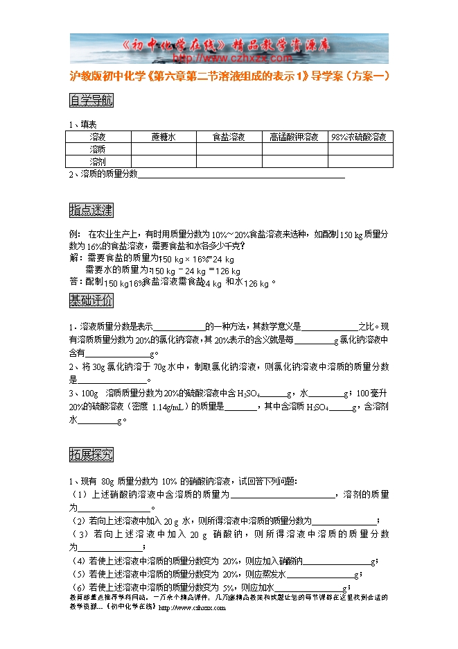 沪教版初中化学《第六章第二节 溶液组成的表示1》导学案(方案一)